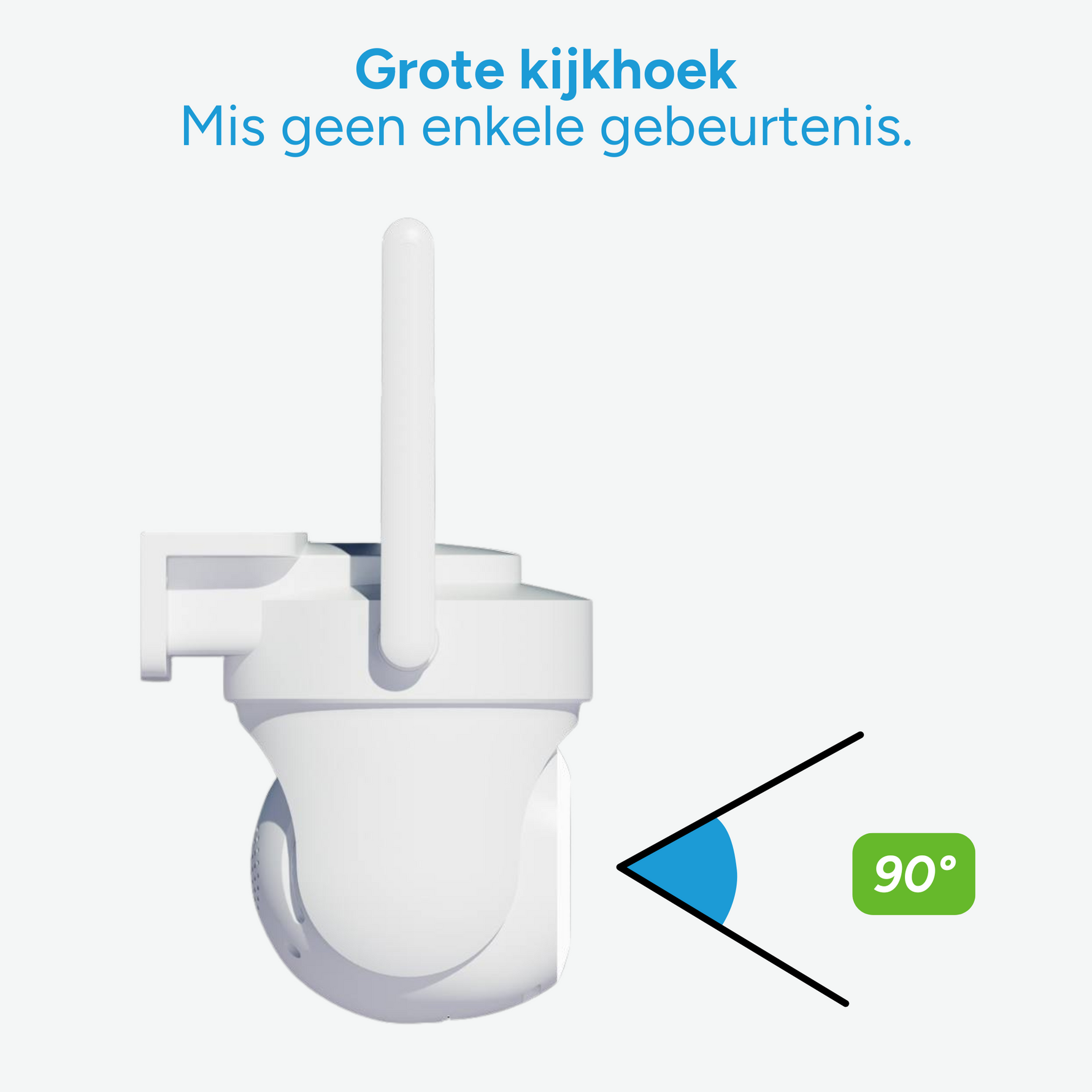 Dankzij het brede beeldbereik van 90° heb je niet alleen volledige controle, maar ook een scherp overzicht van je omgeving. Geen blinde hoeken, geen verrassingen. Veiligheid was nog nooit zo slim en compleet!